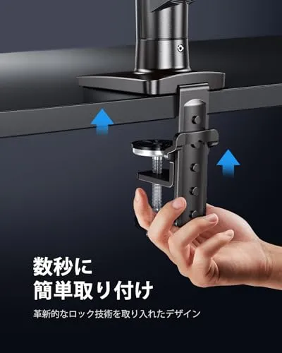 【ディスプレイ角度を自由に変えれる】?アーム:ガス圧で高さ調節 ?アーム関節部360 ?VESAプレート部:上向き35、下向き50、回転360、左右各90。角度や距離などが自分に合って、前後左右に加えて上下も好みの位置に軽々と動かすことができます。ビジネスでの利用はもちろん、トレーダーやゲーマーの方にもおすすめです。