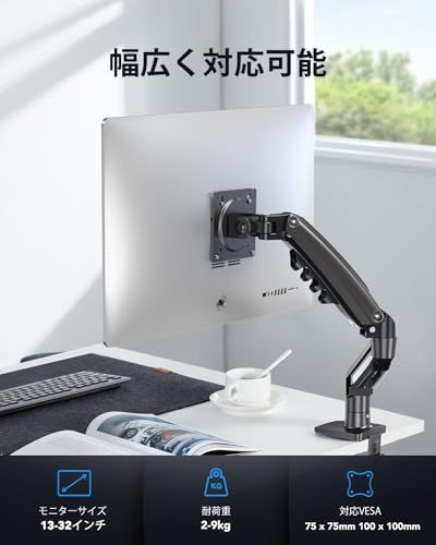 HUANUO (ファーノー) PCモニターアーム 液晶ディスプレイアーム 13?32インチ対応 耐荷重2?9kg ガススプリング式 グロメット式&クランプ式 VESA100*100 多角度調節 ケーブル収納 HNSS6rc