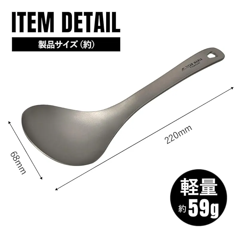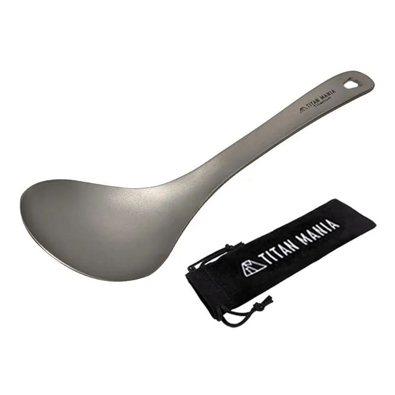TITAN MANIA(チタンマニア) サービススプーン チタン製 取り分け スプーン たっぷりすくえる 軽量 頑丈 直火 サービングスプーン おたま レンゲ 一体型 調理器具 キッチンツール キャンプ ソロキャンプ アウトドア用品 キャンプ用品 収納袋付 1