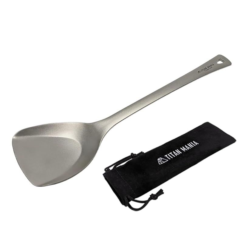 TITAN MANIA(チタンマニア) ターナー フライ返し チタン製 軽量 頑丈 小さめ 直火 一体型 調理器具 キッチンツール キャンプ ソロキャンプ アウトドア用品 キャンプ用品 収納袋付き 0