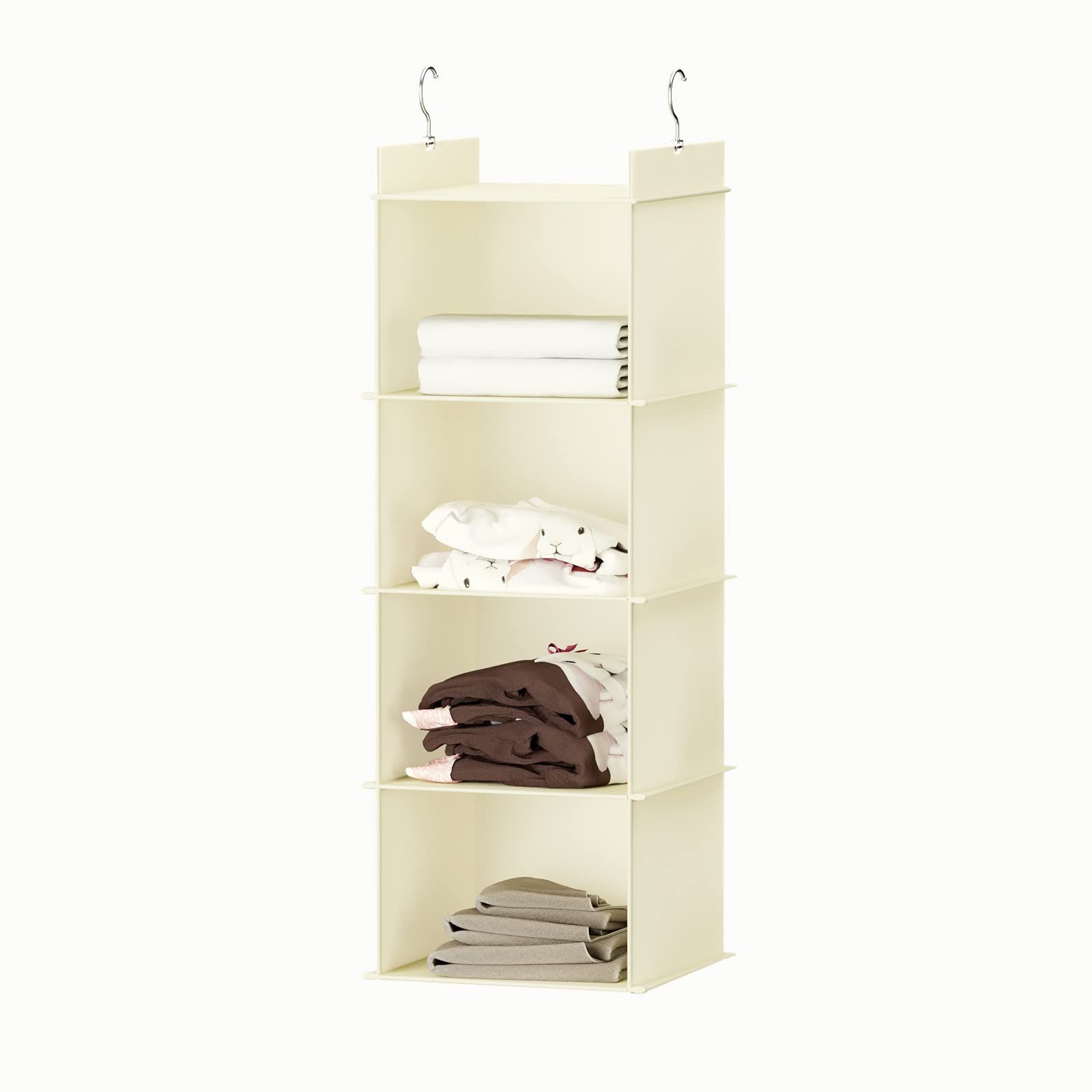 クロゼット 吊るす収納 折りたたみ ぬいぐるみ、洋服、タオルに適用 衣類ラック ハンガーラック 吊り下げ収納 省スペース YOUDENOVA (ベージュ、4段)