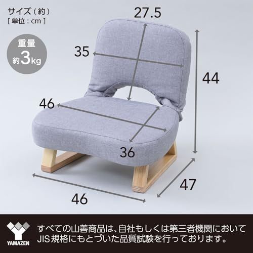 【組立不要】完成品なので面倒な組み立ては不要で、届いたらすぐお使い頂けます。 本体サイズ:幅46奥行47高さ44cm折りたたみ時サイズ:幅46奥行36高さ29cm座面高さ:19cm背部 : 幅35高さ27.5cm座面サイズ : 4636cm構造部材 : 座部/合板、脚部/天然木表面加工 : 脚部/ウレタン樹脂塗装張り材 : ポリエステルクッション材 : ウレタンフォーム東証プライム(株)山善で扱うすべての山善商品は、自社もしくは第三者機関において、JIS規格に基づいた品質試験を行っております。