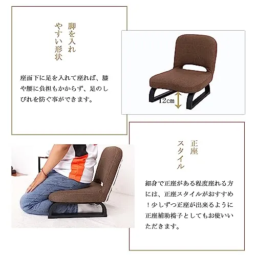 正座椅子 背もたれ付 あぐら正座椅子 背中フィット 正座補助 法事 しびれ あぐら 正座らくらく 和室 イス チェア 軽量 クッション (ブラウン)★tm