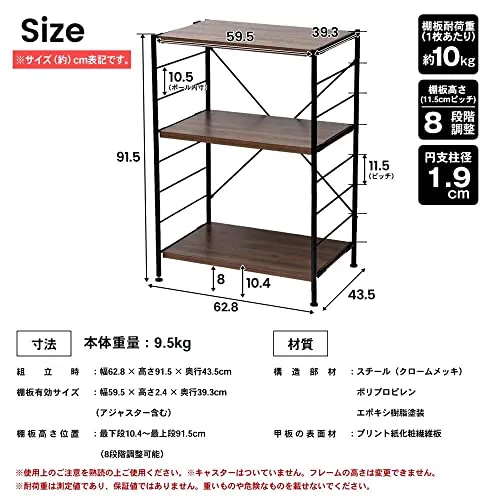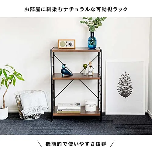 コーナンオリジナル LIFELEX 可動棚ラック 3段 メガーラ60 ブラック/ブラウン★tm
