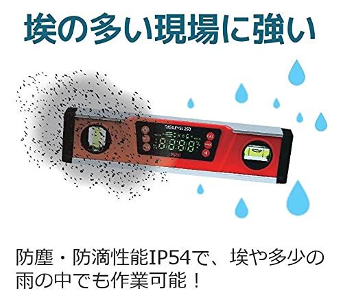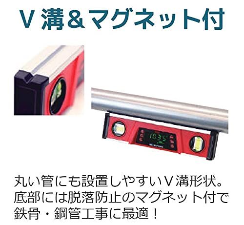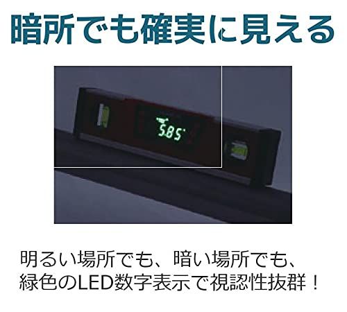 【 特長 】/・角度・勾配・立上り(mm/m)をデジタル表示します。/・高精度で360計測します。/・0/90度をシグナル音でお知らせします。/・基準の角度を設定できる0セット機能です。/・自己校正機能です。/・底部は脱落防止のマグネット付です。/・傾きにあわせてディスプレイが反転します。/