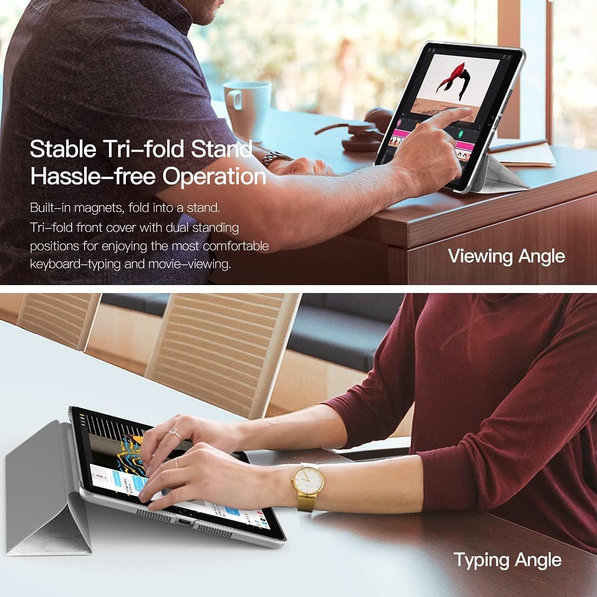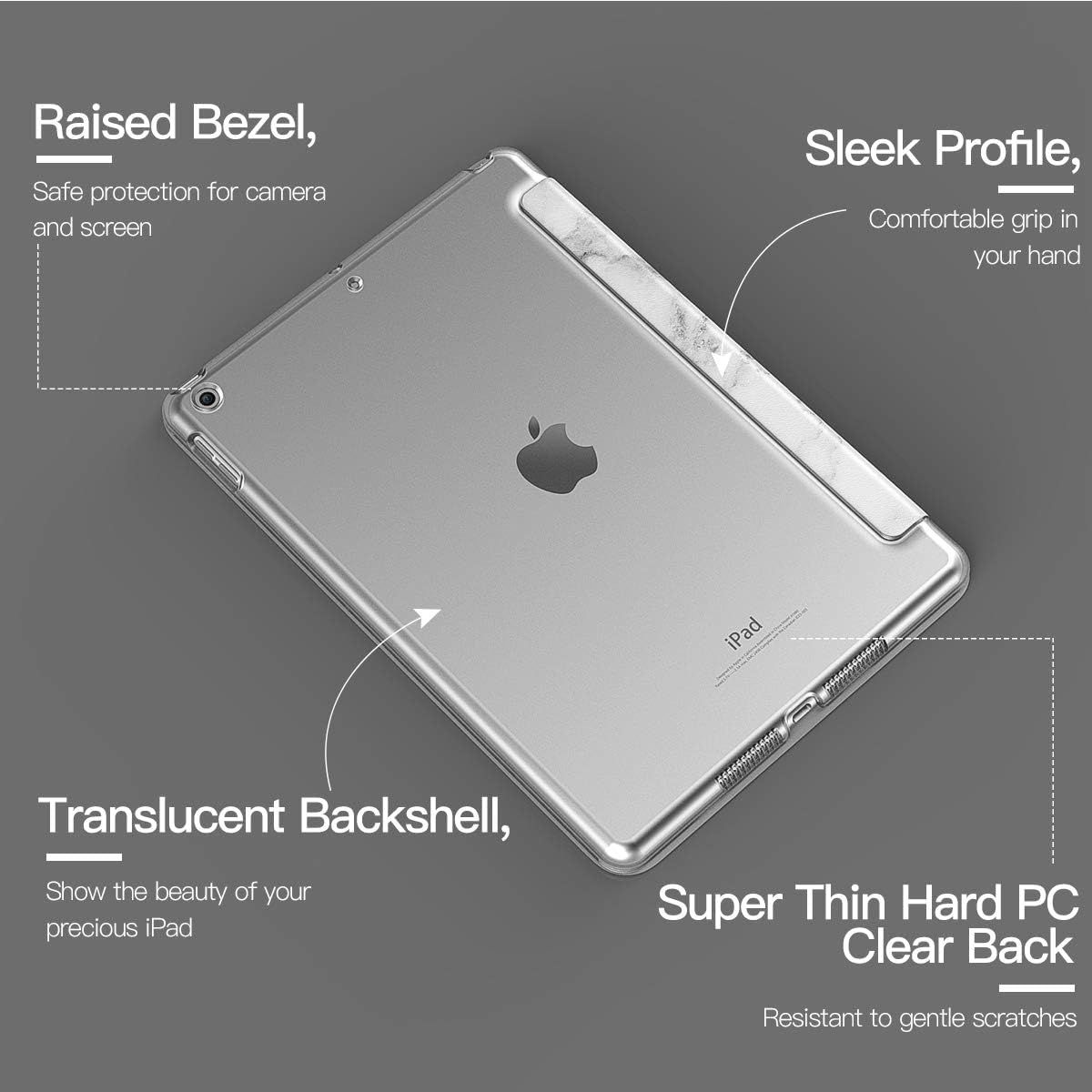 iPad 8 ケース 2020 iPad 10.2 ケース 2019 TiMOVO ipad 第8世代/第7世代 ケース NEWモデル 10.2インチ 半透明 ハードカバー PUレーザー 開閉式 三つ折り スタンド マグネット オートスリープ機能 耐衝撃 軽量 落下防止 精密設計 着脱簡単 ipad10.2インチ ケース (2020/2019) White Marble