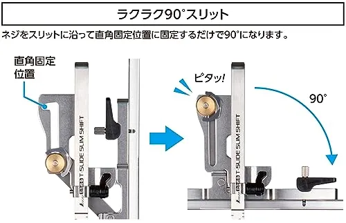 ネジをスリットに沿って直角固定位置に固定するだけで90になります。