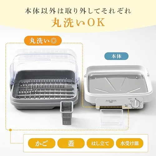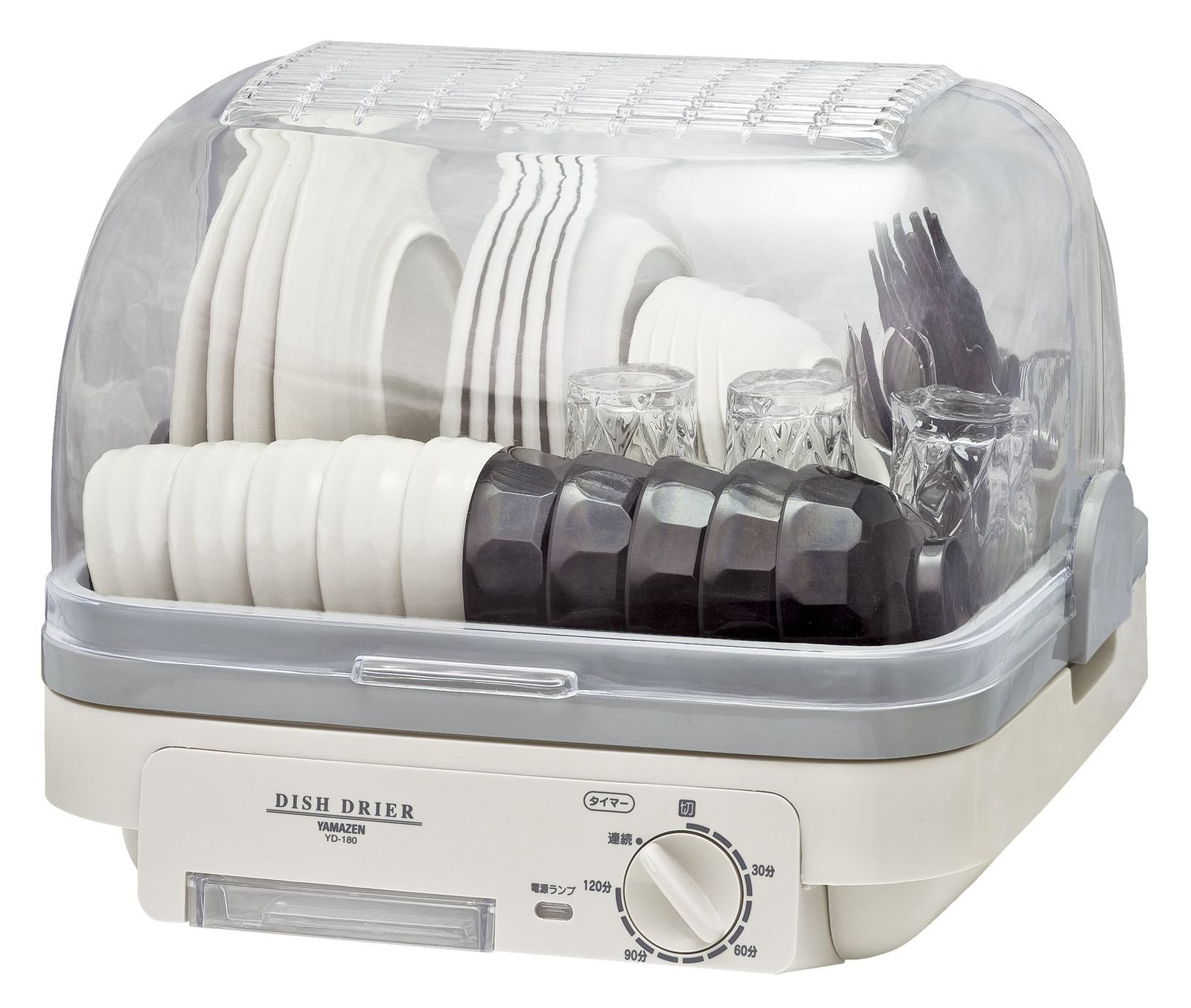 [山善] 食器乾燥器 大容量 (5人分) 120分 タイマー付き ライトグレー (自然対流式) (抗菌/防カビ) 小型 工事不要 YD-180(LH)★tm