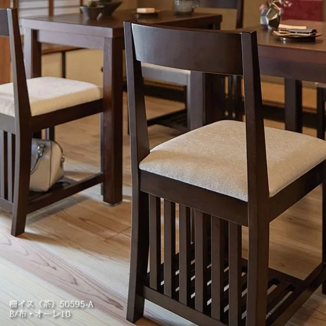 種類10:張地ランクD/茶 50595-A 和風チェア 業務用 棚付き ダイニングチェア 柵イス 張替対応品