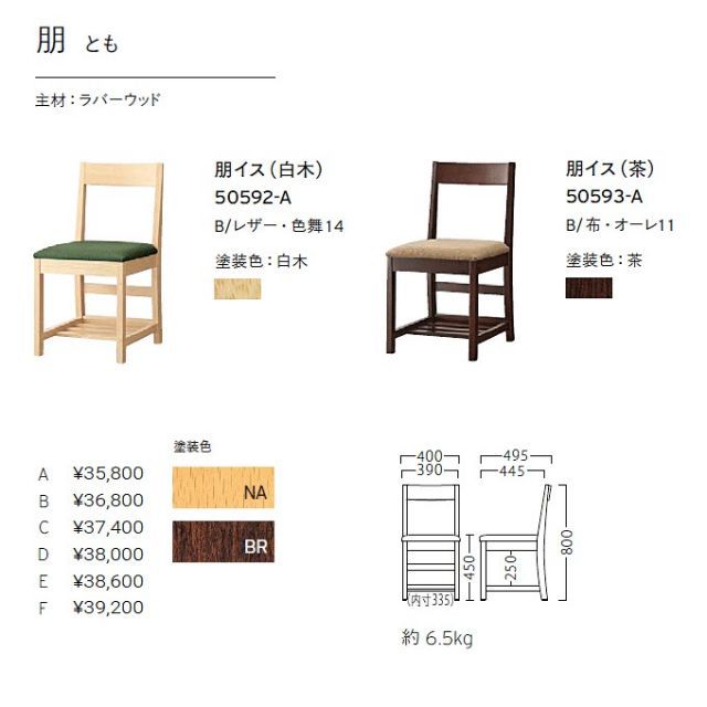 種類5:張地ランクE/白木 50592-A 和風チェア 業務用 棚付き ダイニングチェア 朋イス 張替対応品