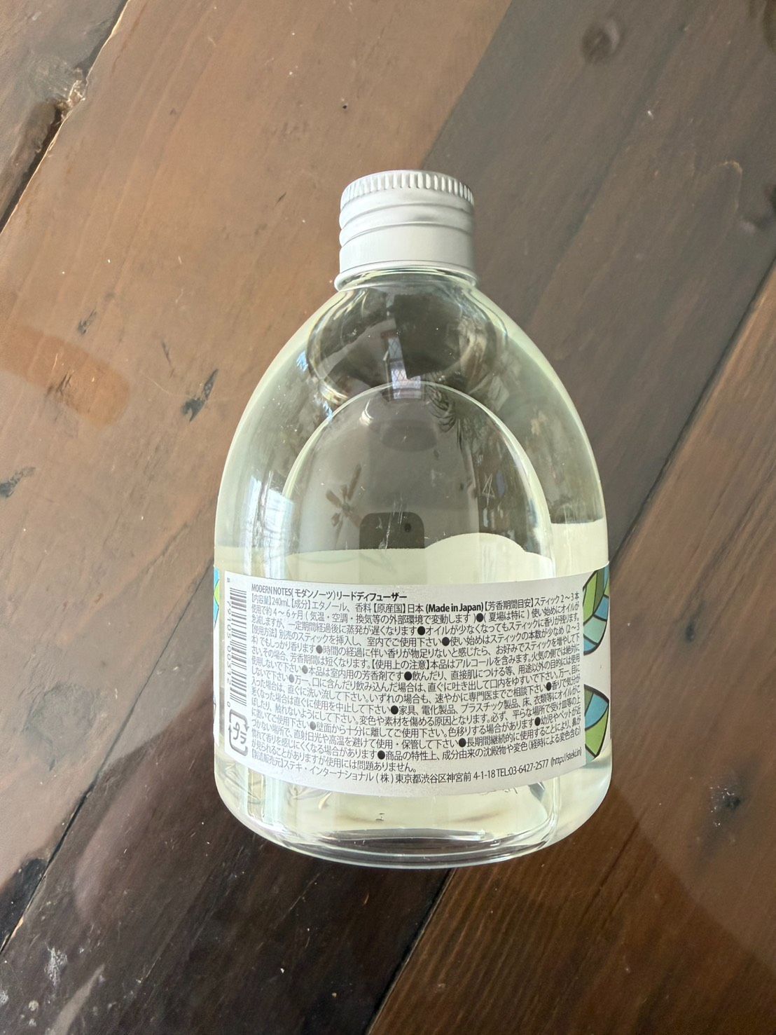 【香り】 VERBENA LEAF 気分リフレッシュ!ヴァーベナと柑橘の爽やかな香り (レモンバーベナ、オレンジ、ピンクグレープフルー ※新品未使用品 商品情報」商品の説明 『MODERN NOTES(モダンノーツ)』とは? 米国シアトル生まれ日本育ちの本格派ルームフレグランスブランド。 ディフューザー累計販売数150万本突破。香料は世界中から取り寄せた高品質の原料から調合。溶剤は香りそのものを最も自然に引き出すアルコール(植物由来)を使用。だから最後の一滴まで良い香りが続きます。 芳香期間:約4~6ヶ月(スティック2~3本使用の場合) ※使用環境により変動します。 原産国:日本 サイズ:底部径7×高さ11cm(専用スティック挿入時約22cm)、口径2cm ご注意 ・本品は室内用芳香剤です。ご使用の前に、商品本体およびパッケージの