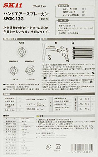 SK11(エスケー11) エアスプレーガン 重力式 口径1.3mm カップ容量 400CC SPGK-13G★tm
