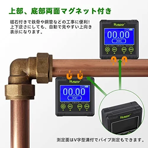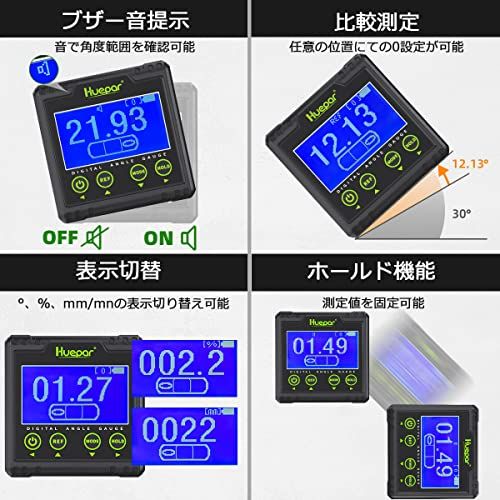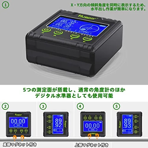 Huepar デジタル角度計 2軸 水準器 傾斜計 2in1デジタルレベル 水平器 アングルメーター バックライト マグネット付き 小型 ミニ 日本語取説付き AG03rc