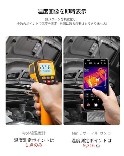 HIKMICRO MiniE サーモグラフィー サーマルカメラ 赤外線カメラ スマホ用- iOS/Android、SuperIR 画像強化、25Hzフレームレート、スマートフォン/タブレット用、-20°C~400°C測定温度範囲、USB-C(iPhone rc