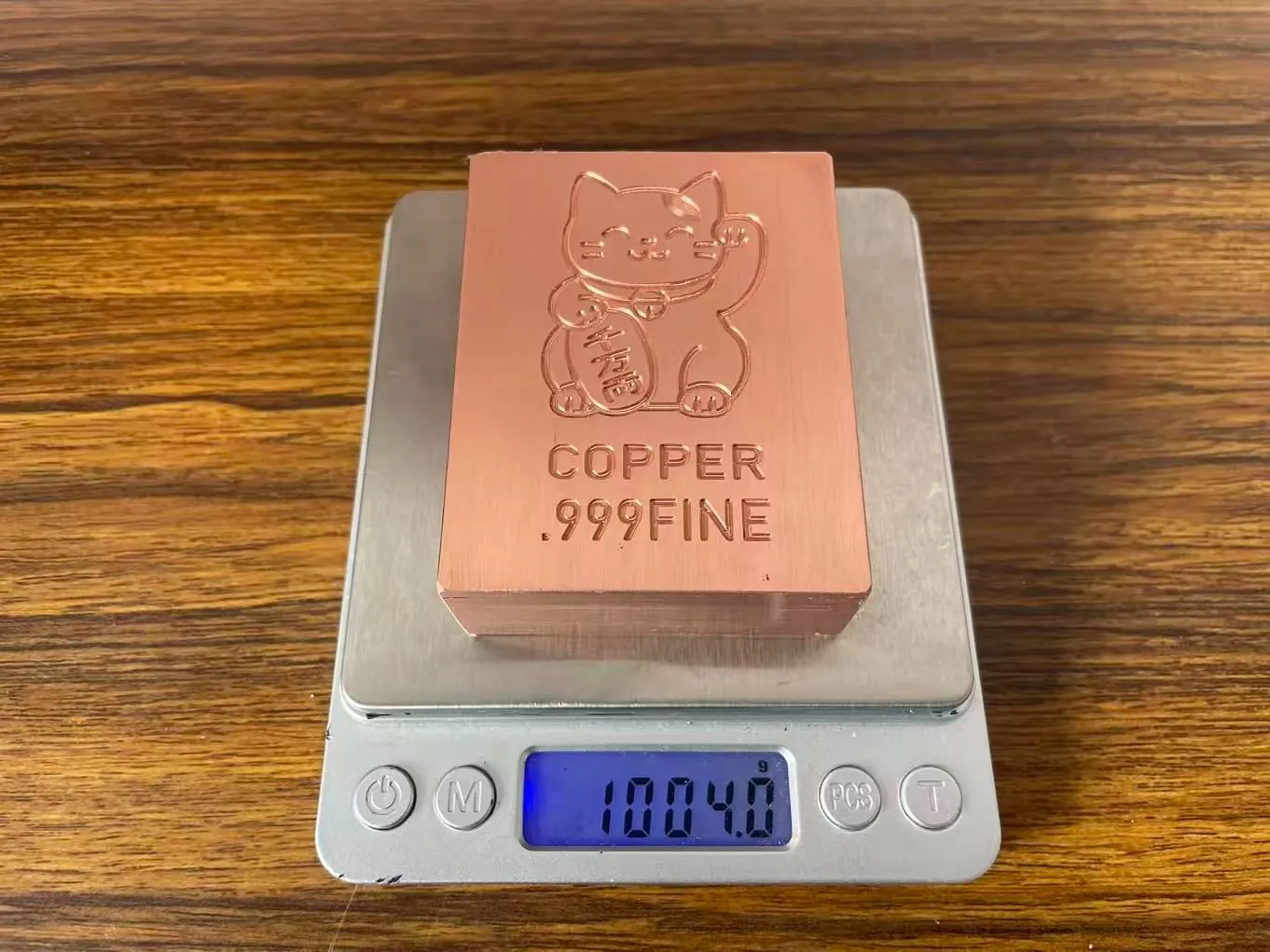 純銅 銅インゴット /ピカ銅 インゴット 銅 1000g 純銅 99.9% 銅インゴット 招き猫