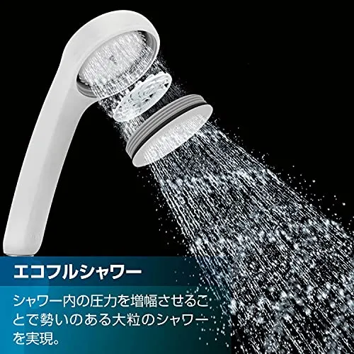 【エコフルシャワーで節水&省エネ】羽根車がシャワー内の圧力を増幅させ、一粒一粒のシャワーの大粒化を実現。より心地よく肌触りの良いシャワー感が得られます。また節湯効果もあり、水道代・ガス代の節約が期待できます。