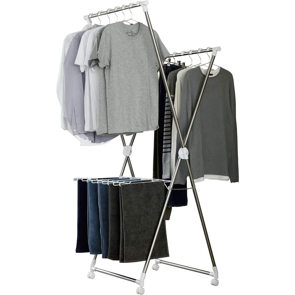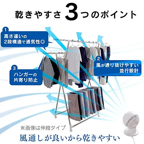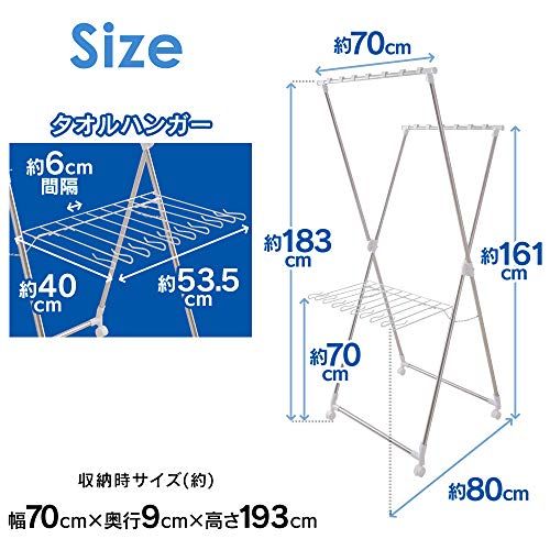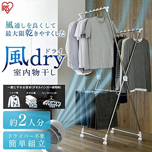 アイリスオーヤマ 約2人分が干せる洗濯物干し 段違いに干せるので風が通りやすく乾きやすいコンパクトな多機能物干し 幅約70×奥行約80×高さ約183cm KDM-70X★tm