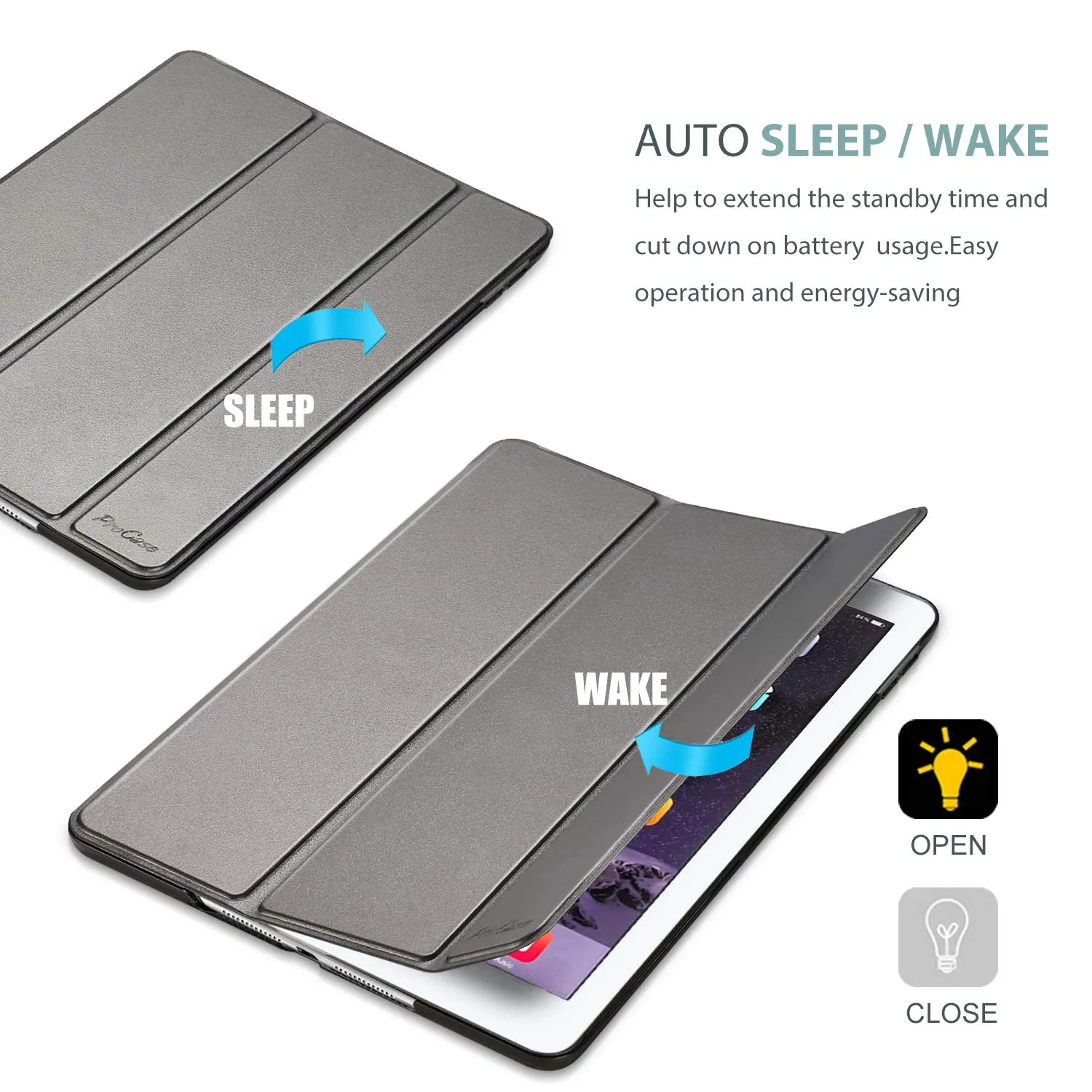 オートスリープ/ウェイクに対応します;マグネットによりカバーの開閉も容易です。