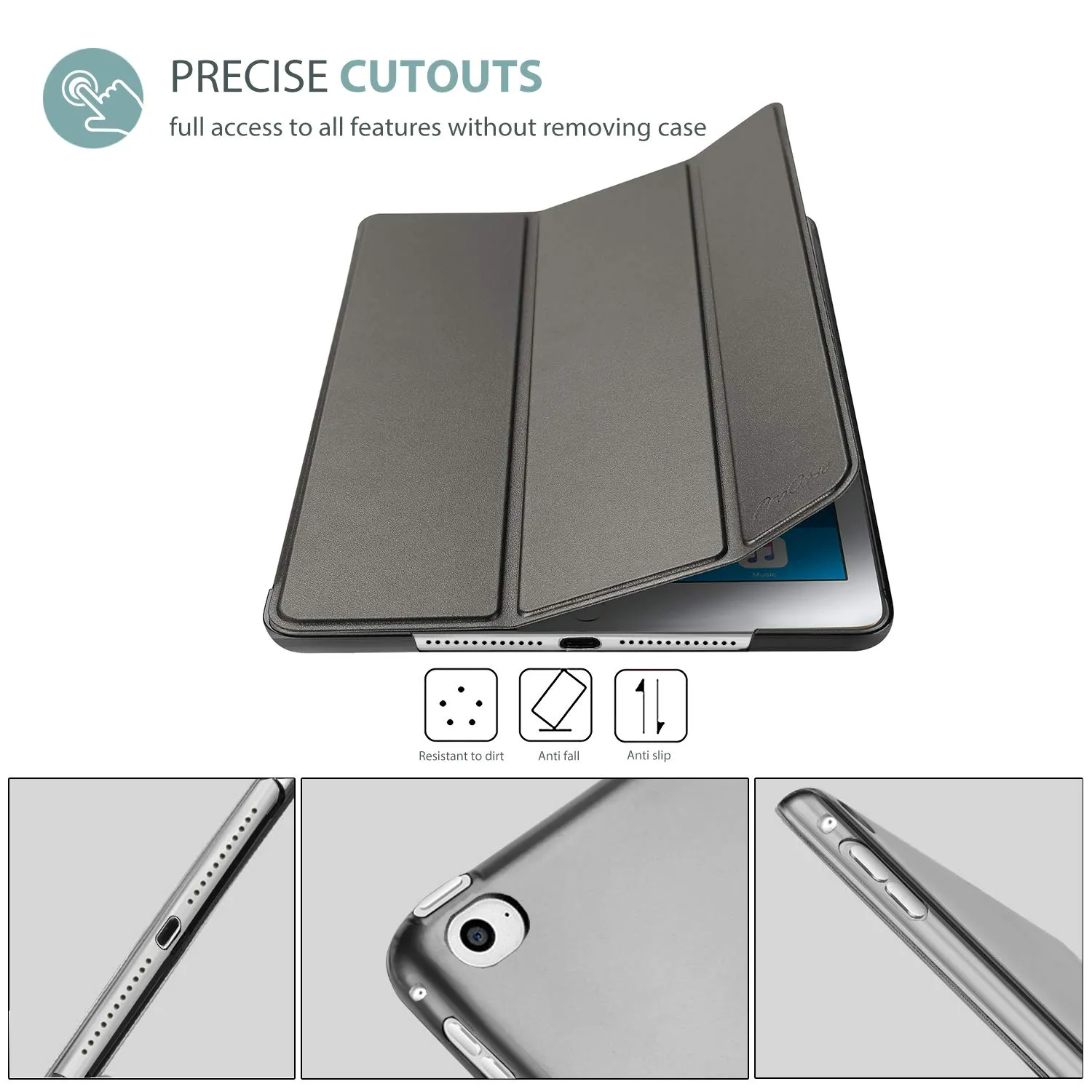 シンプルがクラシックのデザイン;開口部が精確的ですべての機能へ自由にアクセスできます(カメラ、スピーカー、ポートなど)。ご注意:スマートキーボード機能をサポートしません。