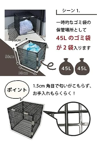 【特徴】家庭用のゴミボックスとして使える!45Lのゴミ袋が2個入り、お家で出たゴミの一時保管に最適!カラスなどの鳥からゴミ袋を守ります!風通しがいいので、臭いがこもりません。上部と側面に蓋が付いているので、入れるときは上から、出すときは側面からなど出し入れ簡単!工具不要でドライバー、ネジなどは一切使いません!この商品には底面がありません。