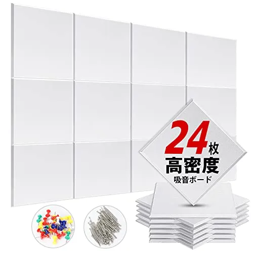 YOPIN 吸音材 200kg/m? 高密度 吸音ボード 吸音対策 室内装飾 楽器 消音 騒音 防音 30cm×30cm 手軽にDIY 難燃 防湿 保温 吸音パネル 虫ピン押しピン付き 24枚★tm