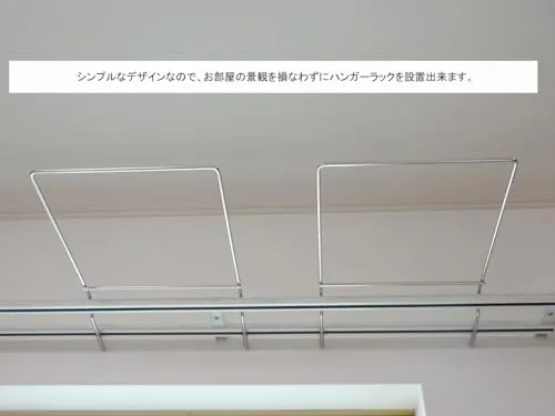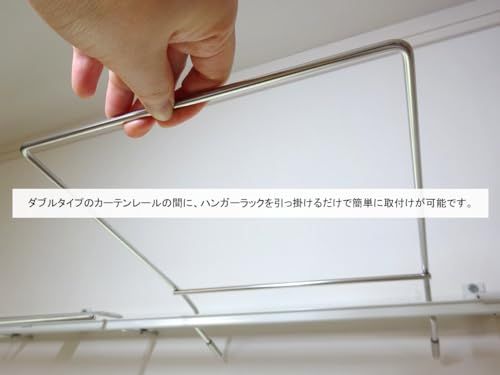 ダブルタイプのカーテンレールの間に、ハンガーラックを引っ掛けるだけで簡単に取付けが可能です。