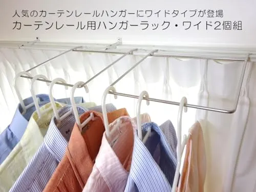 ワイドタイプ 2個組 ダブルカーテンレール用 パーツ 洗濯ハンガー 収納 ランドリーラック ハンガーラック室内物干し 18-8ステンレス製 日本製★tm