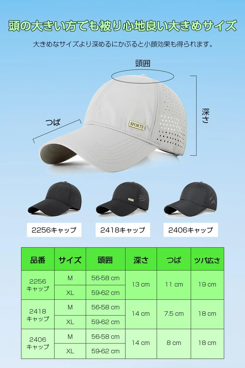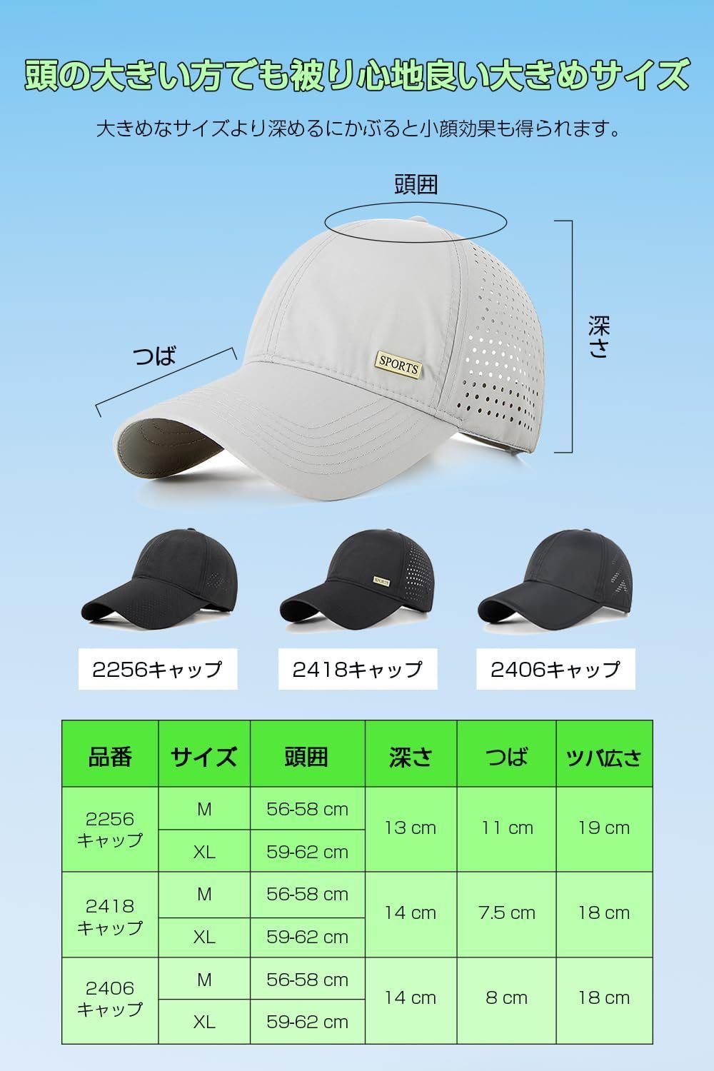 キャップ 帽子 メンズ 62cm大きいサイズ 夏【超軽量・深め・UVカット・通気性】 ランニング 男女兼用 レディース 無地 速乾性 メッシュキャップ シンプル ゴルフ スポーツ ランニング [Moxiep] 登山 ジョギング ウォーキング