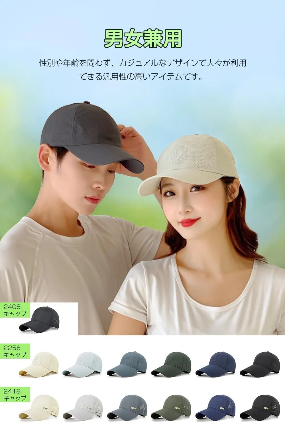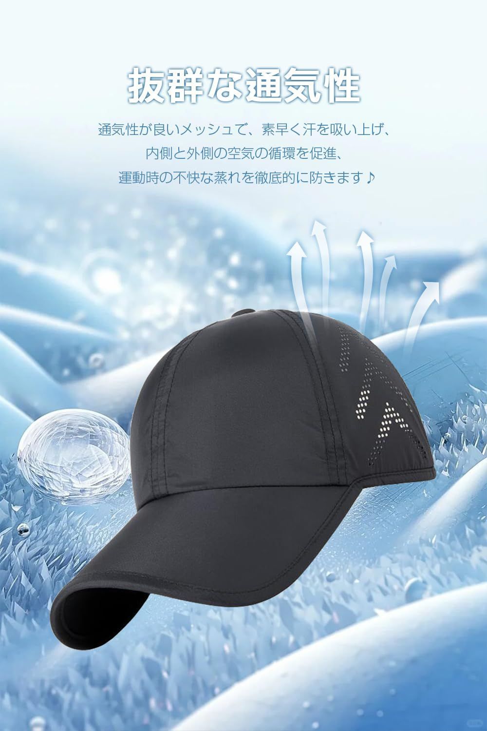 【抜群な通気性】夏に相応しいメッシュキャップが登場して、通気性と速乾性も兼ね備えているメッシュキャップ、これからの時期の気になる紫外線対策にも最適です!蒸れにくいメッシュ生地で通気性が素晴らしくて、熱をメッシュ穴から排気し、空気を循環させることで蒸れを軽減します。長時間の着用しでも快適な被り心地を保ちます。