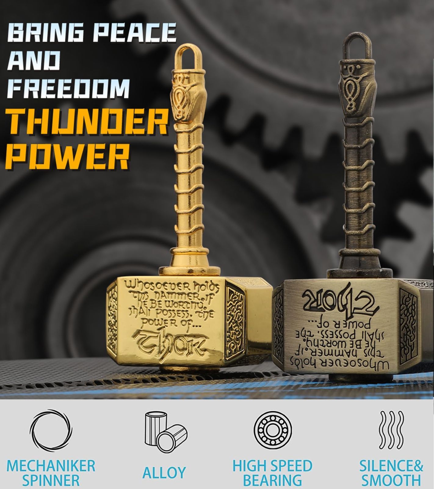 ハンドスピナー ベアリング Thor Hammer Fidget Spinners ステンレススチール ギアスピナー キューブ 指先 回転コマ 2 Pack ストレス解消 EDC ADHD 暇つぶし 脳トレ 子供大人用のおもちゃ (Gold and Bronze)6歳以上に適しています