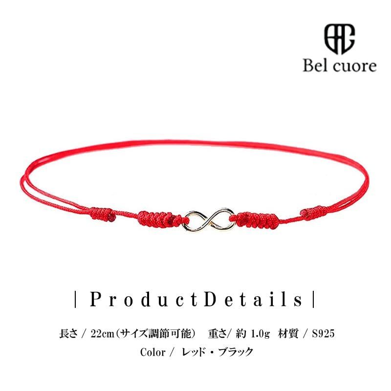 メンズ アクセサリー 赤 紐 黒 シンプル ブレスレッド アンクレット 腕輪 インフィニティ ギフトボックス入り cuore] シンプル [Bel おしゃれ