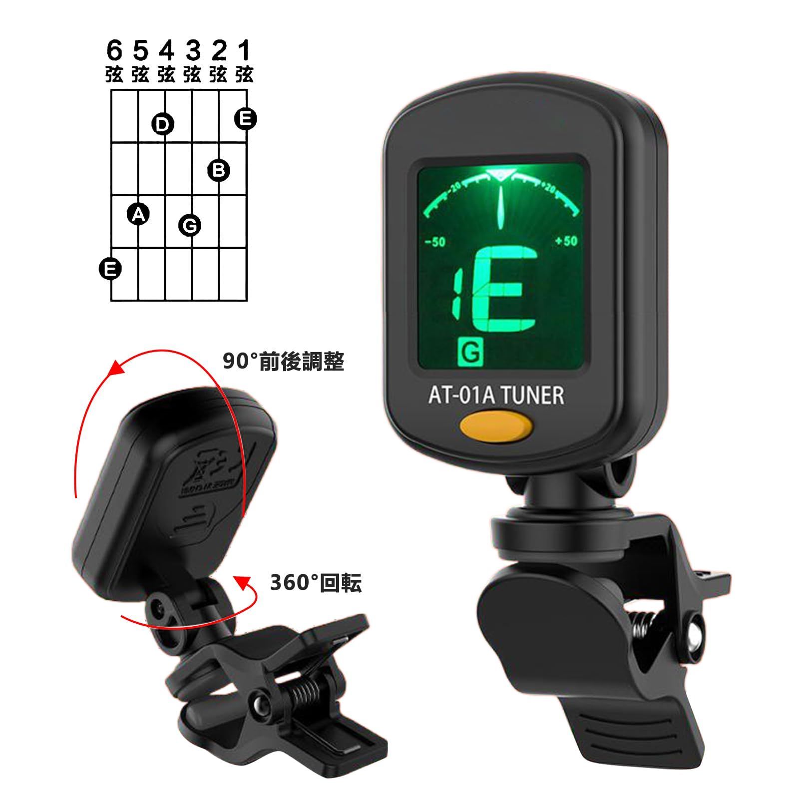 aninako ギター チューナー クリップチューナー チューニングメーター クリップ式チューナー 高精度 ギター/ウクレレ/バイオリン/ベース用
