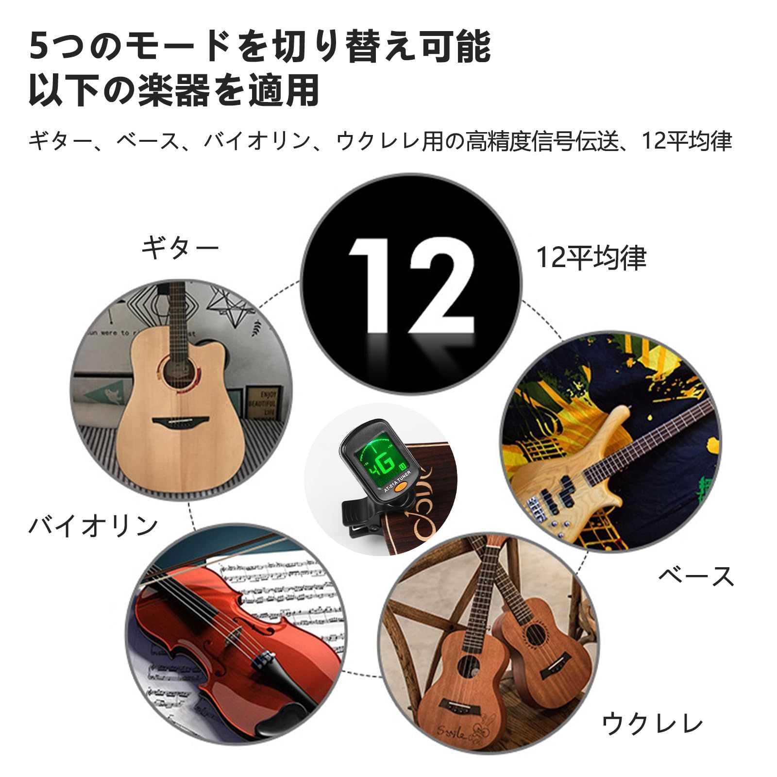 【幅広い用途】ギター、バイオリン、ベース、ウクレレ、十二等分音律などの楽器に適用します。