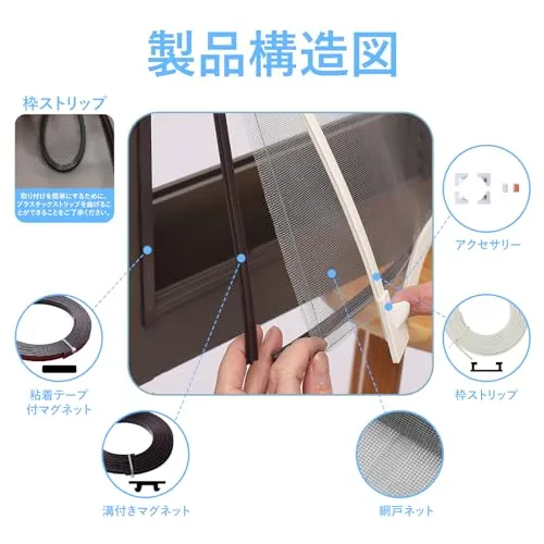 【簡単に取り外し可能】マグネット式なので、取り付けだけでなく取り外しも非常に簡単です。掃除をする際や使用しない時はすぐに外すことができ、粘着テープの痕が残りにくく、キレイに剥がせます。もし痕が気になる場合は、施工前にマスキングテープを窓枠に貼っておくとさらに安心です。