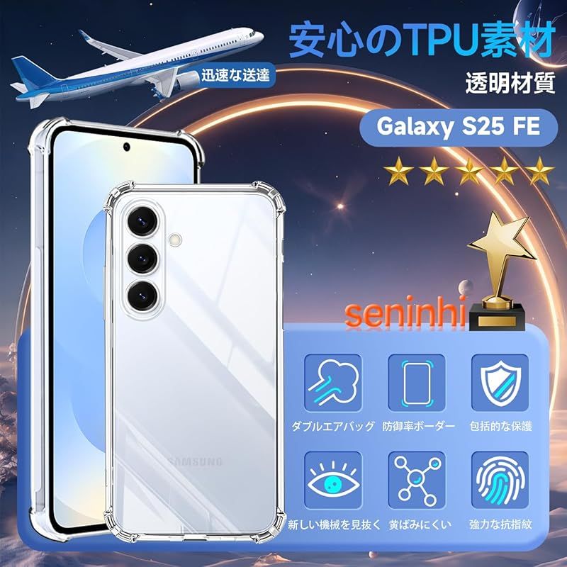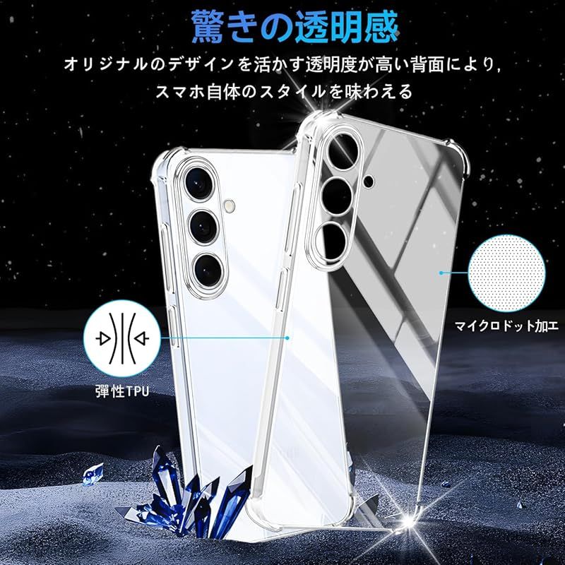 【対応機種】Galaxy S25 FE 専用の最新の進化透明携帯電話ケースです。携帯電話本来の美しさと高級感を再現します。 TPU素材なので、伸縮性があり、取り付けと取り外しやすくて、落下や衝撃が分散して吸収できます。