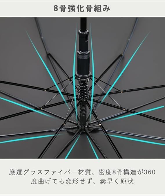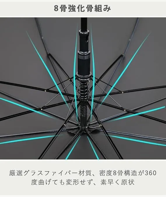 【軽量耐風傘】MasterUmbrella 長傘メンズは高品質なセンターシャフトと8本の柔らかいグラスファイバーで作られ、大風の中で折れるリスクを最大限減らし、耐久性があります。 車に常備し、家、オフィス、教室などに常備し、豪風雨の日にも対応できます。
