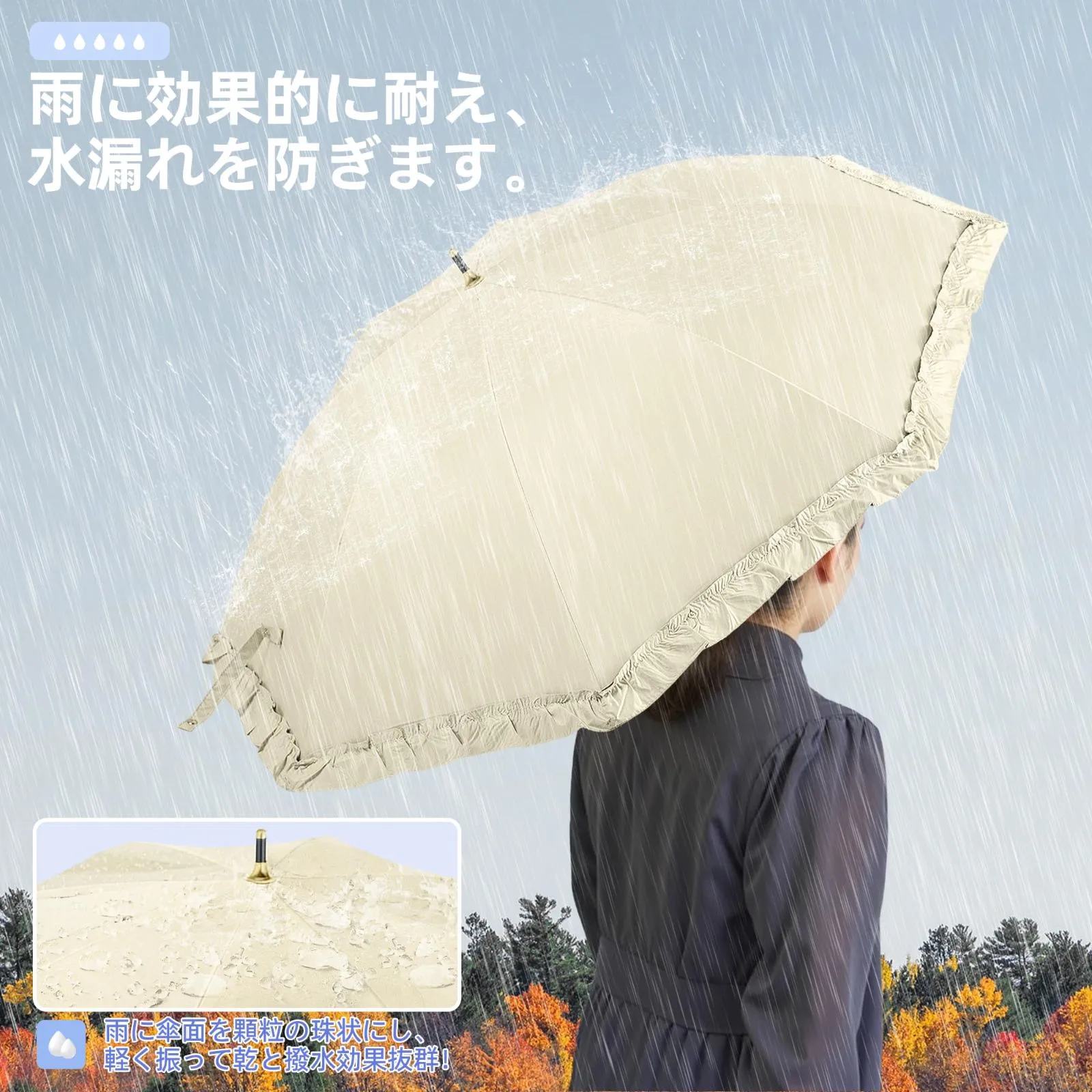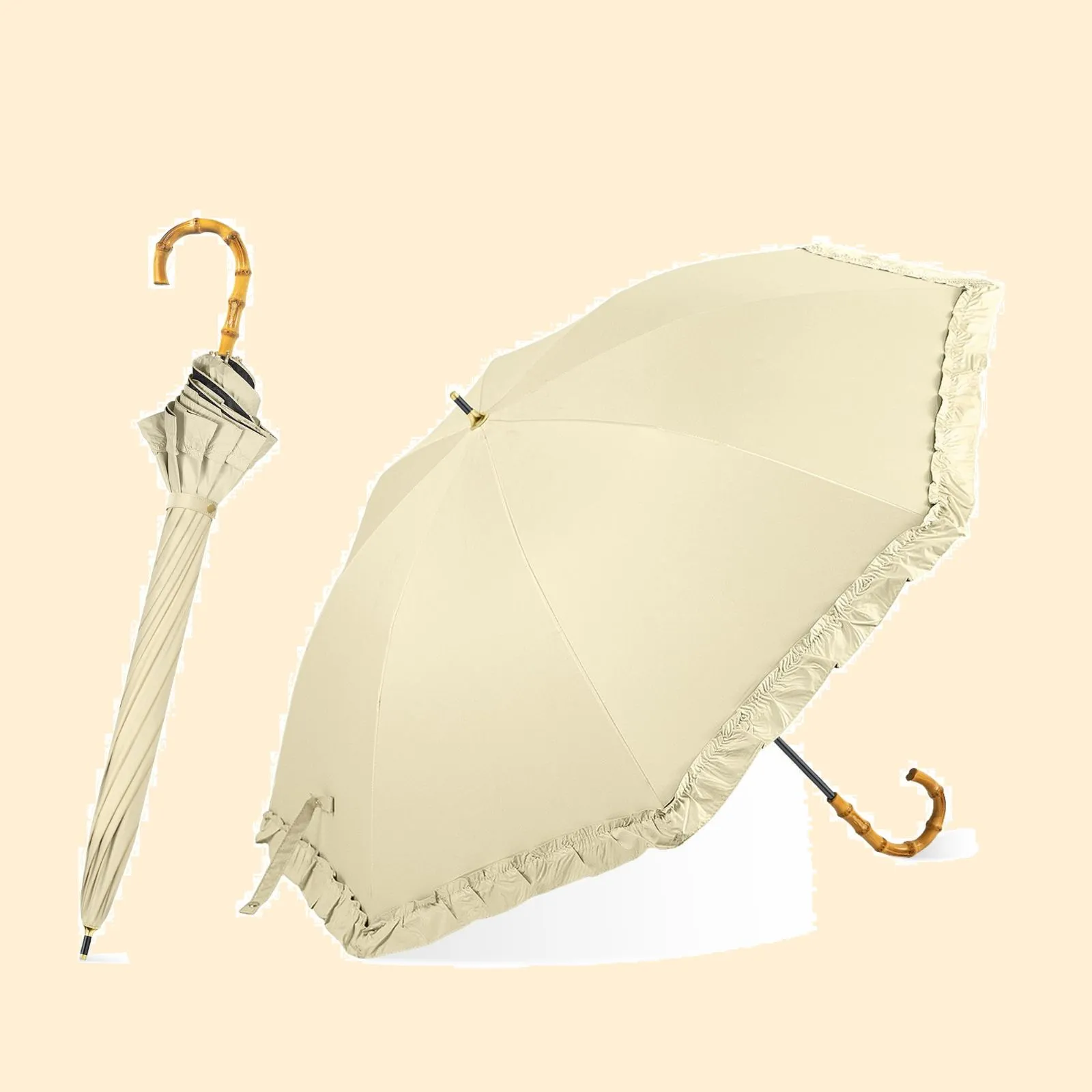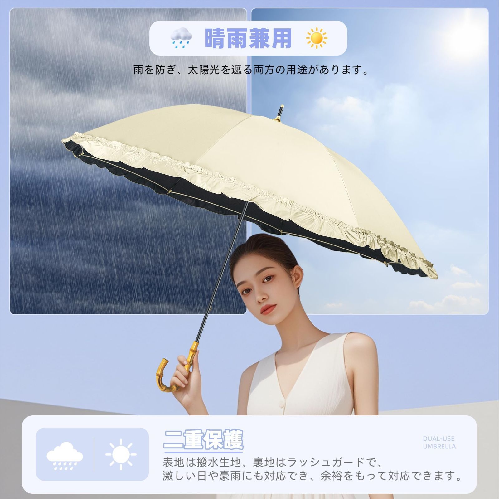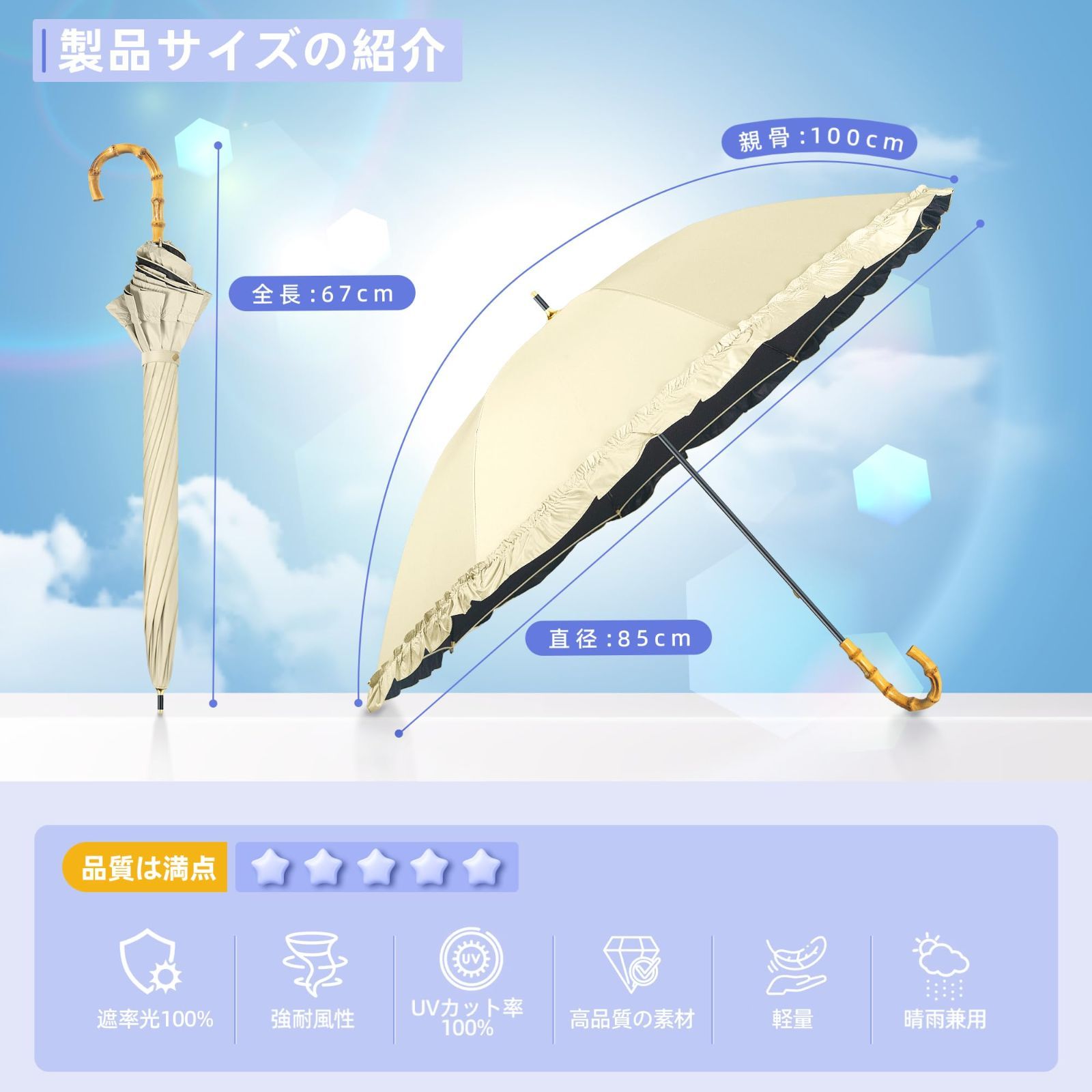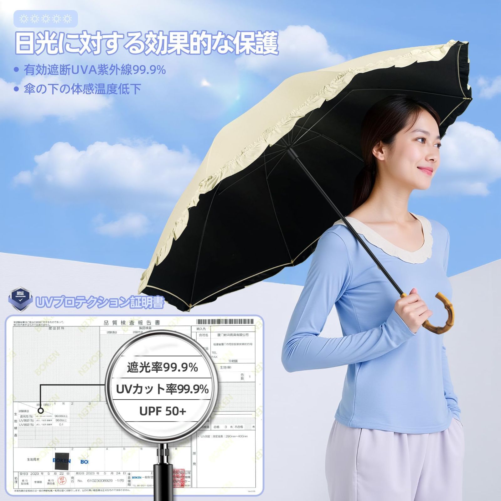 完全遮光 日傘兼用雨傘 レディース 長傘 5級撥水 軽量 遮光 フリル 晴雨兼用 100 遮熱 かわいい uvカット 丈夫 母の日 日傘 プレゼント ラタン MasterUmbrella 持ち手 親骨50cm