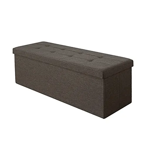 リコメン堂 スツール 収納スツール 幅110cm ワイド 折りたたみ ファブリック 収納付き 蓋付き 北欧 おしゃれ 収納ベンチ ベンチ 2人掛け 3人掛け ボックススツール 椅子 収納ボックス (ブラウン)★tm