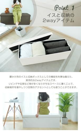 【イスと収納の2wayアイテム】 腰かけ用のイスと収納ボックスとしての機能性を兼ね備えた、実用的な2wayアイテムです。リビングや玄関など物が多くなりがちなスペースに置くことで、収納場所を増やしつつ空間のアクセントとしても使うことができます。