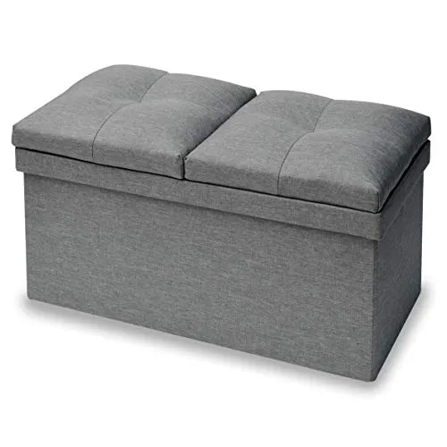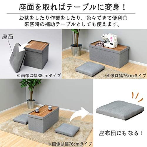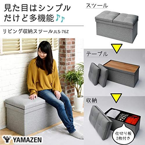 山善(YAMAZEN) 収納スツール テーブル付き 座面が座布団にもなる 折りたためる オットマン 収納ボックス 椅子幅76×奥行38×高さ44cm かんたん組立 ライトグレー JLS-76Z(LGY)★tm