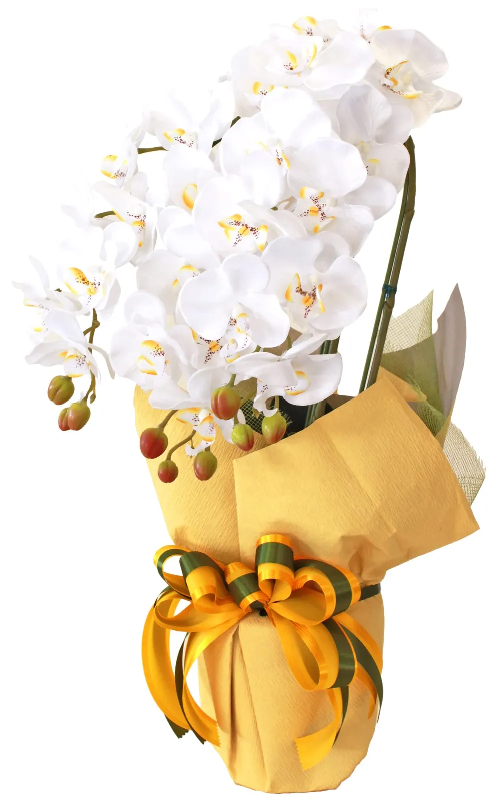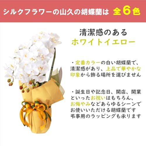 山久 造花 シルクフラワーの胡蝶蘭 3本立ち ホワイトイエロー CT触媒加工(消臭分解・防汚作用) 開店祝い ギフト★tm