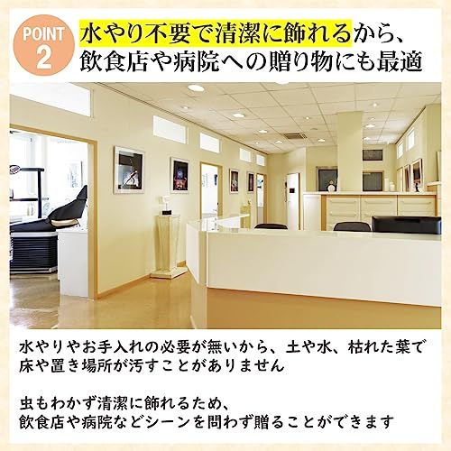 事務所・病院・幼稚園などの開店祝いや周年祝い、ご家庭の新築祝いや母の日のプレゼントに。花言葉は「幸せが飛んでくる」。飾るとお部屋がぱっと明るくなり、枯れないため永く飾ってお楽しみになれます。