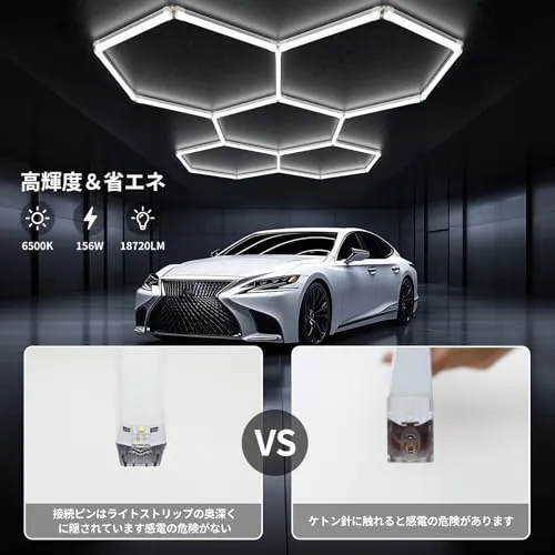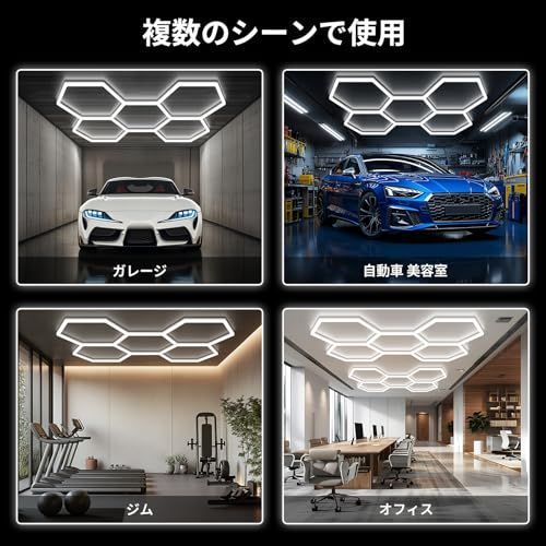 【デザインと機能性を融合】ハニカムLEDガレージライト 「暗くて作業しづらい」から卒業。スタイリッシュなハニカム設計が生む、広く均一な光で車庫が快適な作業空間に生まれ変わります。