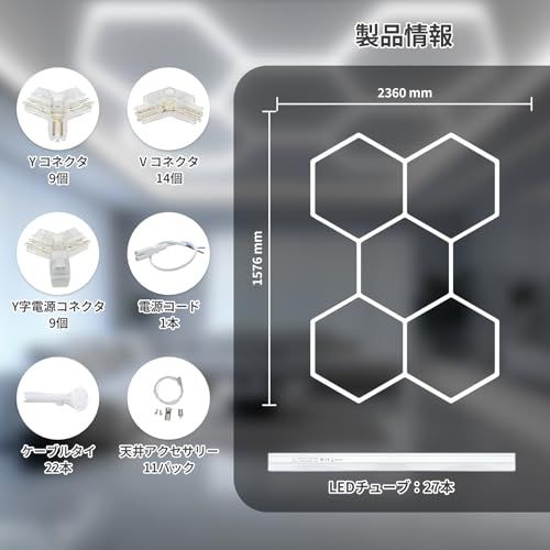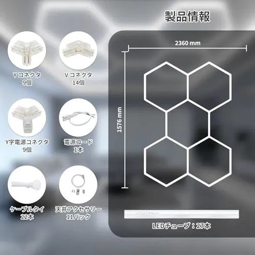 ハニカムライト、六角形ガレージライト - 192W 5000K 25650LM 、 LED ショップライト、車のディテールガレージ、ワークショップ、地下室、ジム、理髪店用★tm