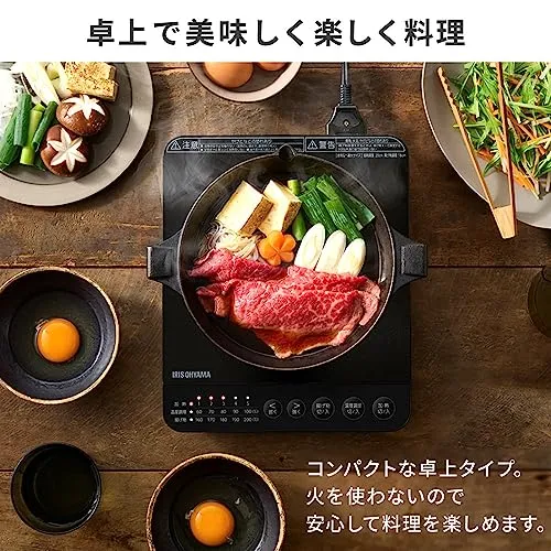 電源:AC100V(50/60Hz)定格消費電力:1000W商品サイズ(cm):幅約24奥行約28.6高さ約5.4質量(電源コード含む):約1.7kg電源コード長さ:約1.5mヒーター:IHヒーター 1000W