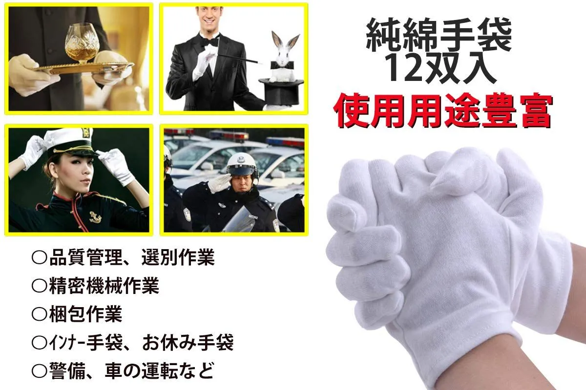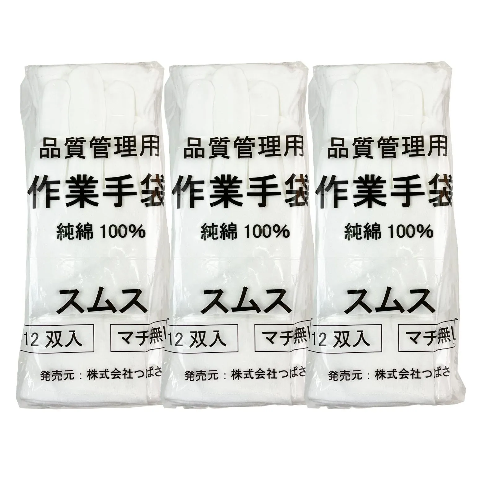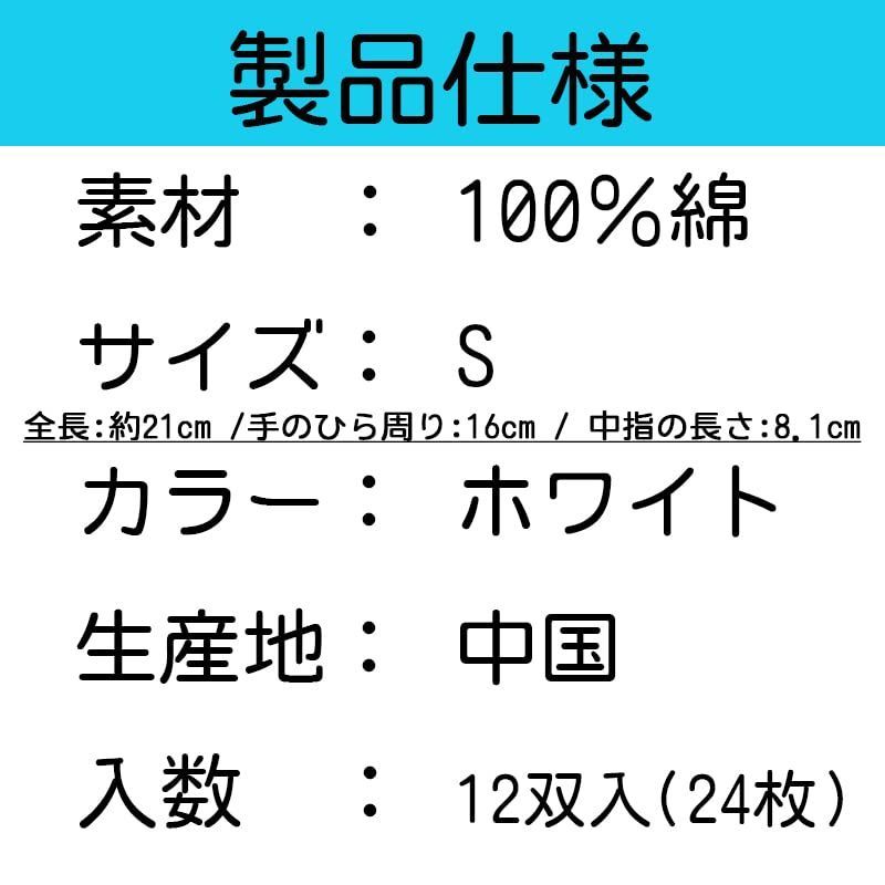 品質管理 検品 作業手袋 多用途 マチなし 女性に最適 1袋(12双入) 手袋 純綿100% Sサイズ スムス Tsubasa 【Sサイズ】つばさ