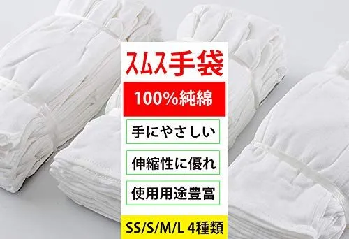 【Sサイズ】つばさ Tsubasa スムス 純綿100% 手袋 1袋(12双入) 女性に最適 多用途 作業手袋 検品 品質管理 マチなし Sサイズ Sサイズ・全長:約21cm 手のひら周り:16cm 中指の長さ:8.1cm 手荒れやアトピー対策 貴金属店や不動産業などの貴重品に触れる業務に 車、自転車などの運転時に 日焼け対策として スロットやメダルゲームに