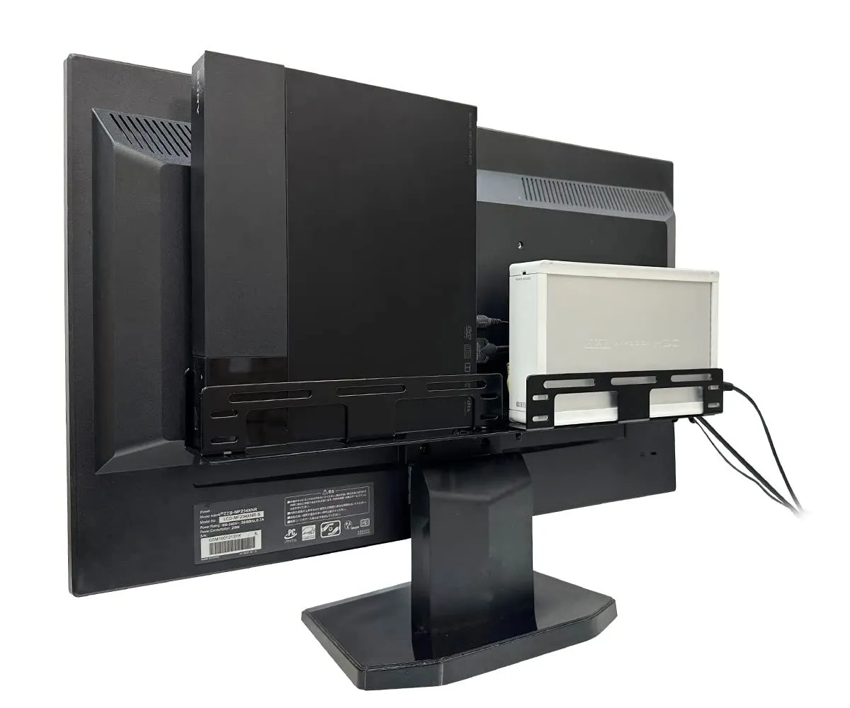 大容量収納!モニターアームと併用して取付ができるVESA規格対応のワイド型モニター背面用収納ホルダーです。