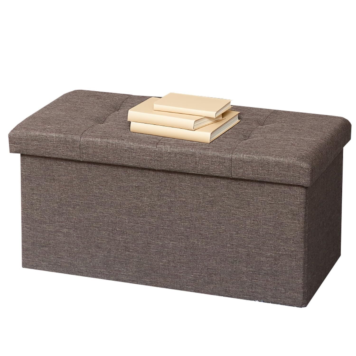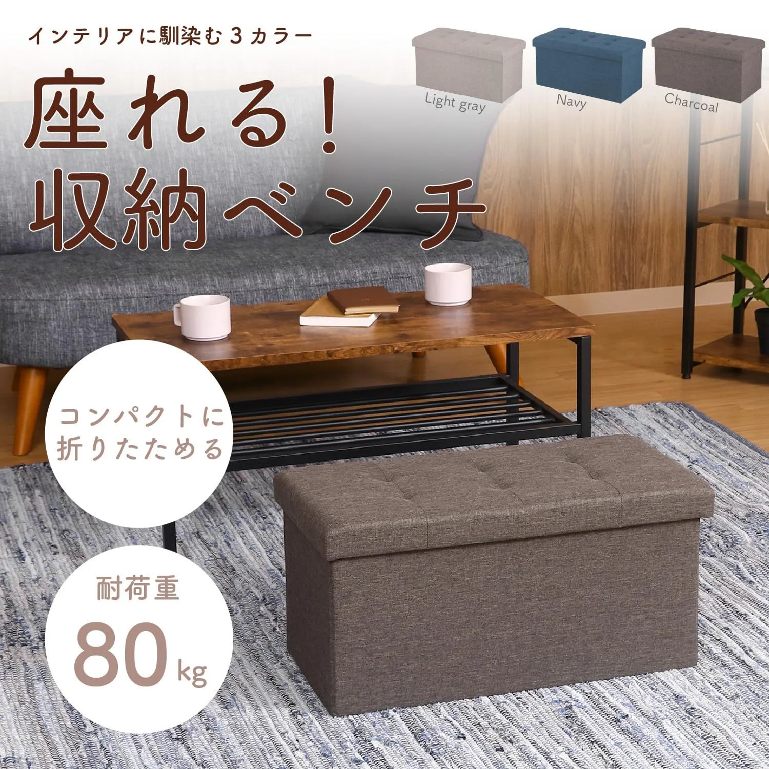 不二貿易(Fujiboeki) 収納ベンチ 収納ボックス 幅60×奥行30×高さ30cm チャコール オットマン 耐荷重80kg 折りたたみ ボックススツール ハント 86140
