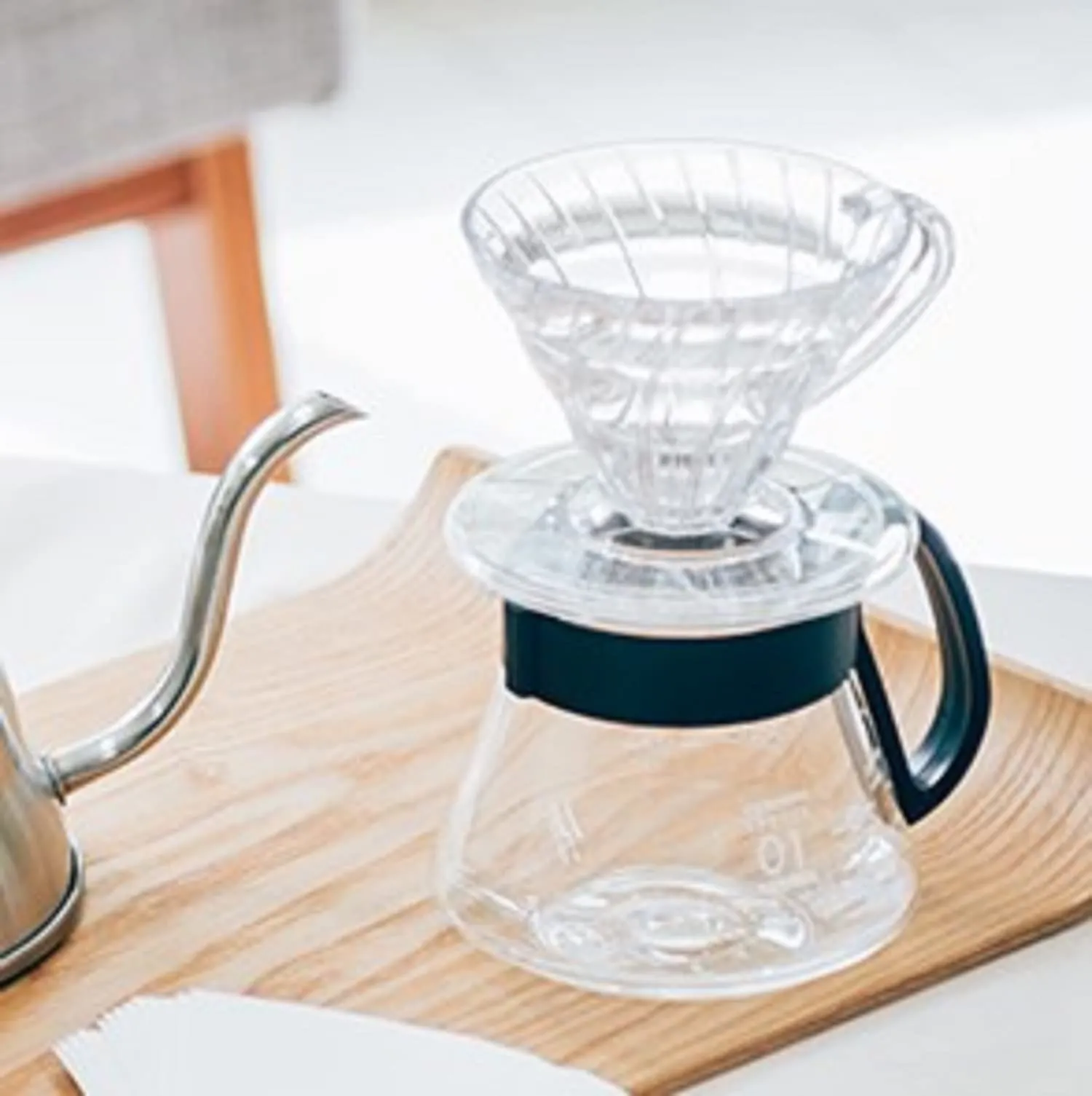 【便利なメモリ付き】mL表示に加えて、コーヒーのおおよその杯数目安がプリントされているので、メモリを見ながら抽出できます。